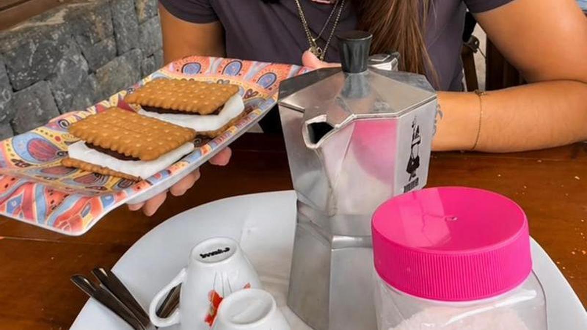 Na zwieńczenie kulinarnej podróży nie mogło zabraknąć timby – tradycyjnego kanaryjskiego deseru – podanej z kawą prosto z klasycznej kawiarki. To, co jednak najbardziej urzekło odwiedzających, to różany vermut. Przyrządzany z roślin rosnących w okolicy, serwowany z aromatyzowanym lodem. „Vermut jest spektakularny” – zapewniają, do tego stopnia, że zamawiali go kilkakrotnie podczas posiłku.