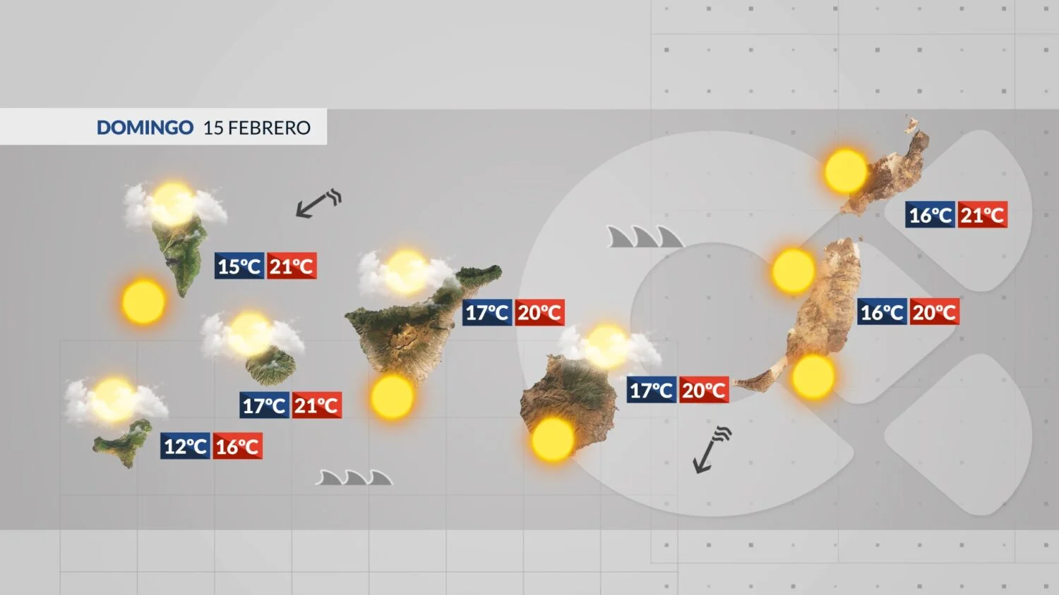 Niedziela, 15 lutego, na Wyspach Kanaryjskich będzie dniem z przewagą słońca, ale z silnym wiatrem i bardzo silnymi porywami w najwyższych partiach. Pod koniec dnia na wschodzie archipelagu pojawi się lekka kalima. Temperatury pozostaną typowe dla tej pory roku.