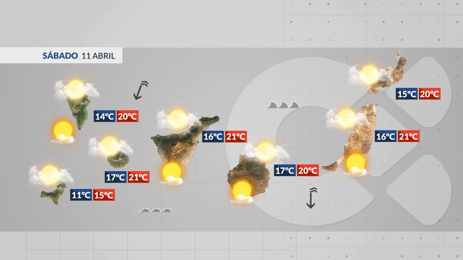 Sobota 11 kwietnia przyniesie na Wyspach Kanaryjskich nieco spokoju po przejściu niżu, który oddala się i słabnie. Głównymi bohaterami dnia pozostaną jednak silny wiatr z północy i wzburzony Atlantyk. Szansa na deszcz jest mniejsza, a chmury będą się głównie trzymać północnych stoków wysp górzystych oraz wysp wschodnich.