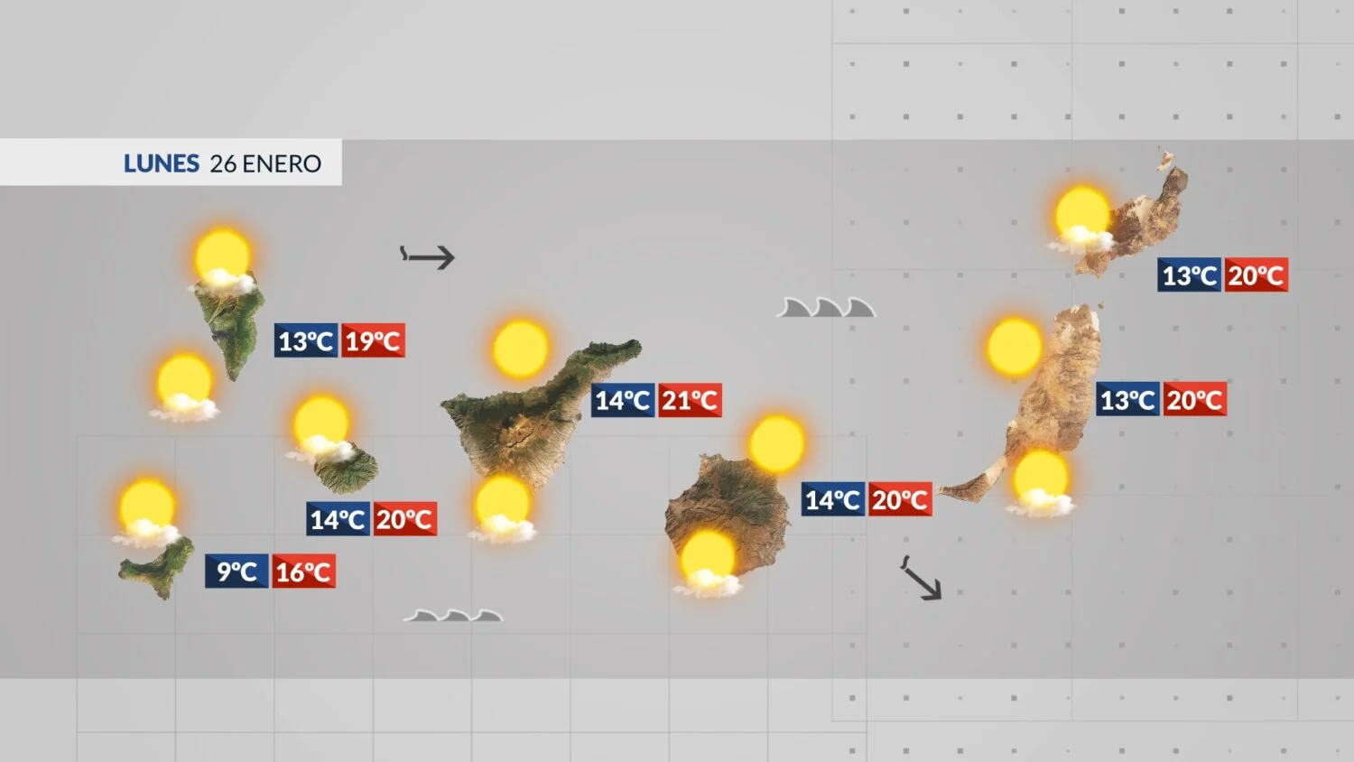 Nowy tydzień na Wyspach Kanaryjskich zaczyna się bez meteorologicznych rewolucji. Przed nami dzień z przewagą słońca, typowymi dla tej pory roku chłodnymi nocami i porankami oraz przyjemnym ciepłem w środku dnia na wybrzeżach.