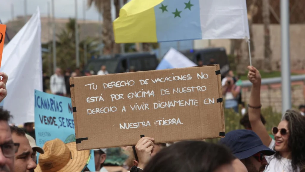 Fodor’s wskazuje, że turystyka generuje ponad jedną trzecią PKB i około 40% miejsc pracy, ale jednocześnie przestrzega przed jej kosztami dla usług, infrastruktury i jakości życia. Całe to społeczne niezadowolenie wyraziło się w manifestacjach pod hasłem „Canarias tiene un límite” (Wyspy Kanaryjskie mają limit). Protesty wybrzmiały przeciwko trzem fundamentalnym problemom zagrażającym podstawom życia na wyspach: turystyce masowej, galopującym kosztom mieszkań oraz presji na środowisko.
